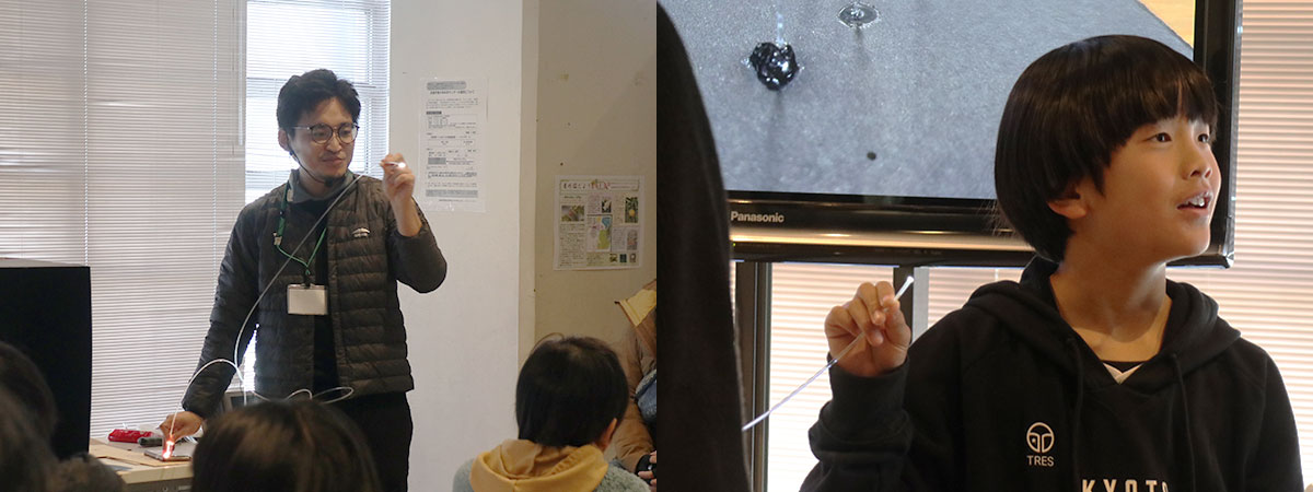 このワークショップは、子どもたちが驚きや不思議を見つける機会を後押しする こどものキヅキ応援プロジェクトの一環として実施されました。今回はつくるまなぶ京都町家科学館の協力を得て開催しました。